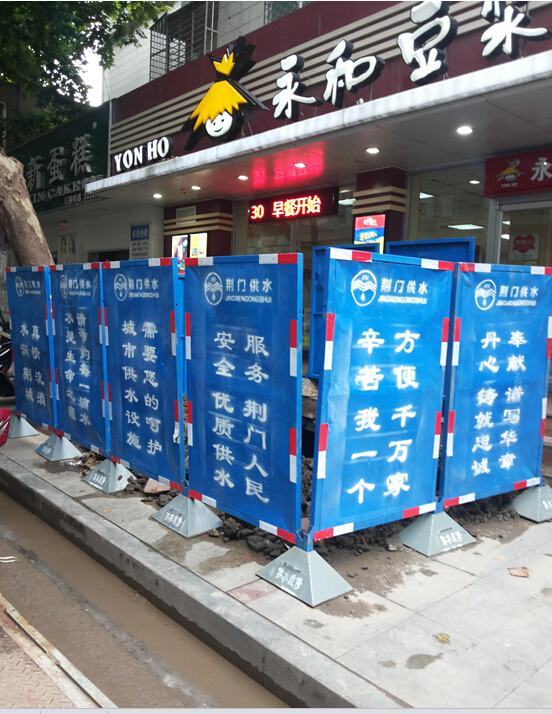 維修處本著經(jīng)濟可行的原則對原來的55塊安全警示牌進行了改造,制作了新式底座,對牌面進行了打磨拋光上漆。利用牌面進行供水公益廣告宣傳,噴涂了“城市供水設(shè)施需要您的呵護”、“水是生命之源,請節(jié)約每一滴水”、“辛苦我一個,方便千萬家”等公益廣告。這一廣告載體展示了企業(yè)形象,成為街頭巷尾的一道靚麗風(fēng)景線,收到了一致好評。