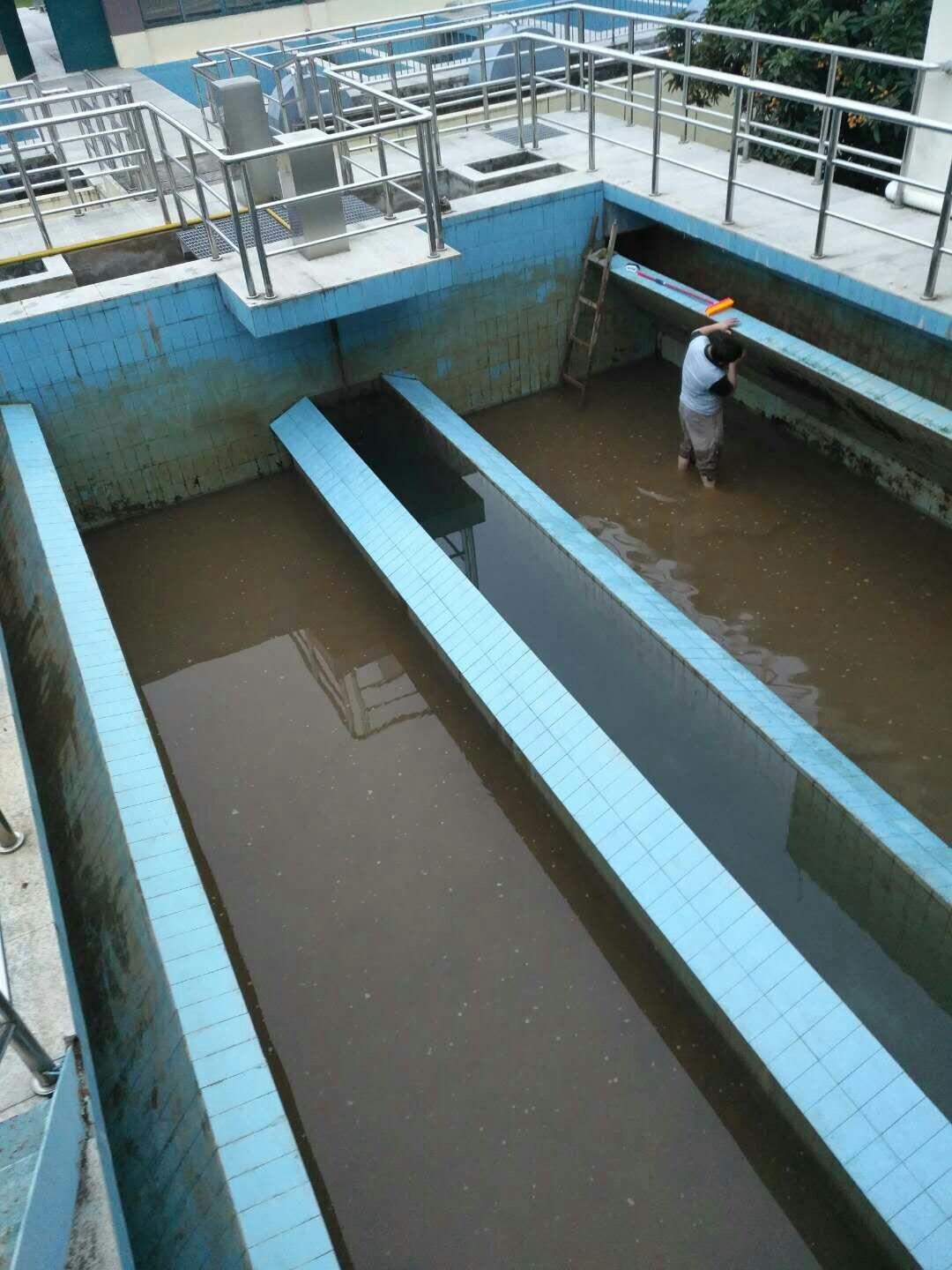 水廠濾池由于長時間不間斷運行,給出水帶來污染。在為期2天的清洗工作中,工作人員在濾池中認真鏟刮、清掃、沖洗濾池內壁殘留不少淤泥、雜質、青苔,清理過的濾池內壁煥然一新。