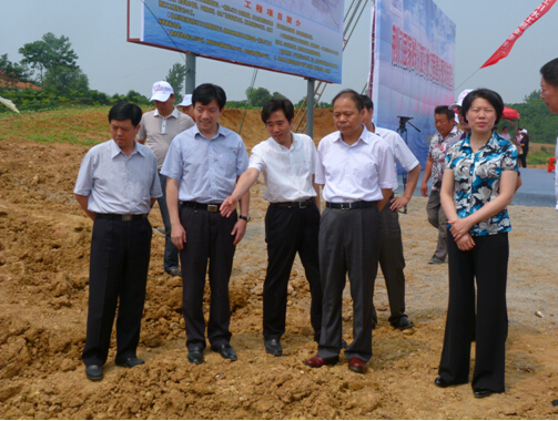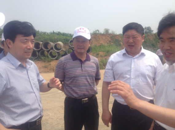 市委書(shū)記萬(wàn)勇(右二)、市長(zhǎng)肖菊華(右一)、副市長(zhǎng)鄭中華(左一)等領(lǐng)導(dǎo)觀摩施工現(xiàn)場(chǎng)