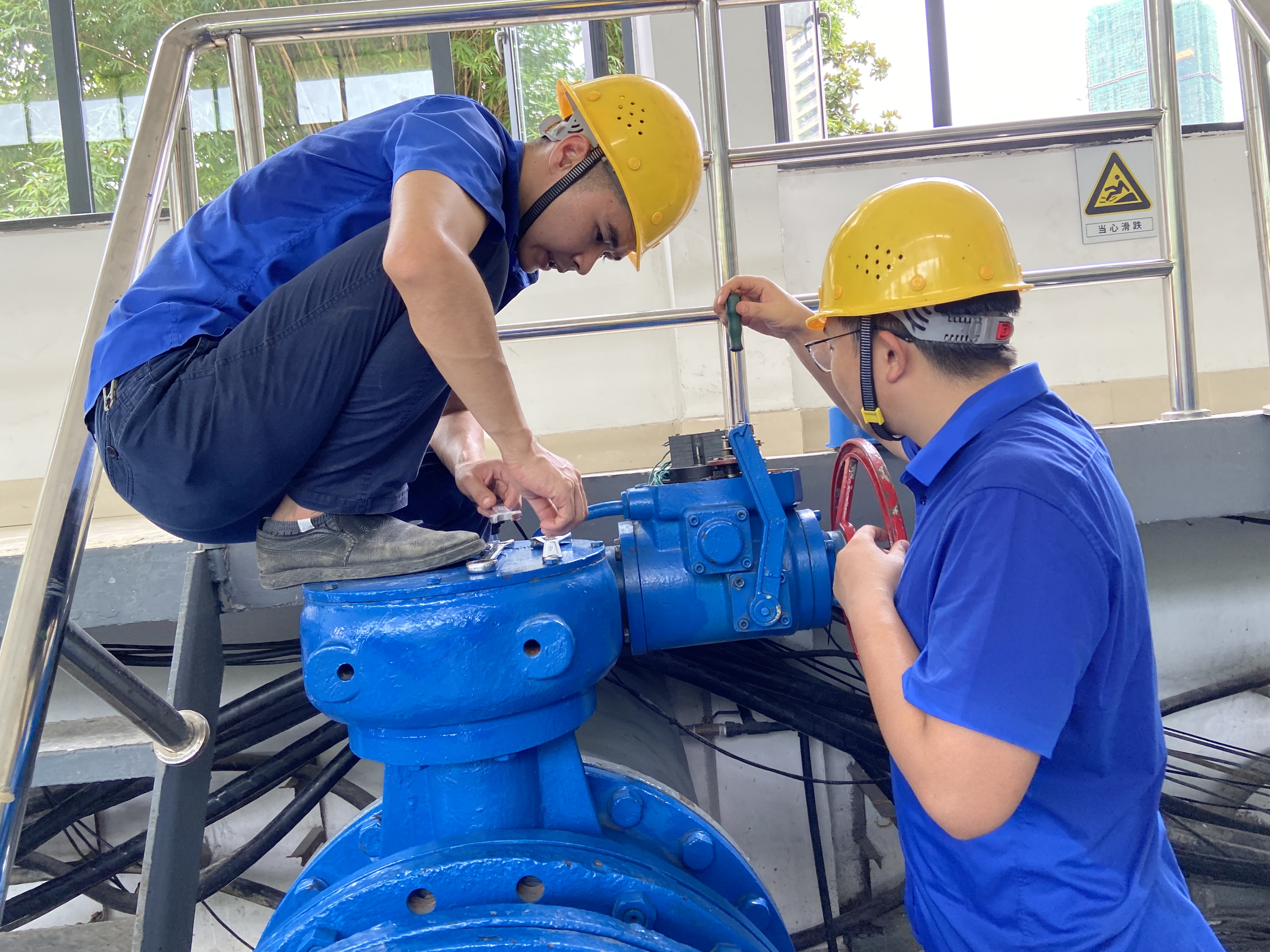 7月16日上午9:00,巡視人員發(fā)現(xiàn)中壓泵房1#機(jī)組閥門無法正常開啟,經(jīng)檢查,發(fā)現(xiàn)閥門控制系統(tǒng)故障,行程過力矩,導(dǎo)致執(zhí)行器外殼破裂,固定軸承損壞。相關(guān)人員立即上報(bào)站長。了解情況后,站長當(dāng)機(jī)立斷,立即部署安排搶修工作。維修人員全員出動(dòng),與時(shí)間賽跑,焊接執(zhí)行器外殼、更換軸承及閥門、較準(zhǔn)行程,在40℃高溫下歷時(shí)近十小時(shí),工作服反復(fù)濕透多遍,終于趕在當(dāng)晚19:00完成了任務(wù),最大程度減少了對用戶生活帶來的不便。