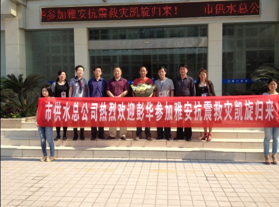 512日上午,市住建委領(lǐng)導(dǎo)以及供水總公司干部職工在供水大樓前熱烈歡迎供水職工彭華從四川雅安救災(zāi)一線平安勝利歸來。