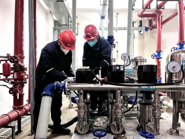 水務(wù)集團(tuán)二次設(shè)施運(yùn)維班在去年通過加裝排氣閥,解決了供水主管網(wǎng)停水或壓力波動(dòng)較大時(shí),進(jìn)水罐處空氣泵機(jī)運(yùn)行異常問題。隨后馬不停蹄,以練代戰(zhàn),利用空余時(shí)間學(xué)習(xí)二次加壓設(shè)備電機(jī)運(yùn)行原理,并多次演練電機(jī)進(jìn)水后的快速搶修,工作效率得到大幅提升。