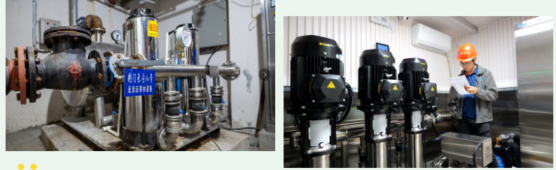 該小區(qū)物業(yè)管理員龔先生親歷了此次遷改施工全過程。嶄新的一體式泵機開機運行時,他激動不已:“真是太好了,自從二次供水設(shè)施移交給你們后,我們就像吃了一顆定心丸,都在盼著這一天呢!”