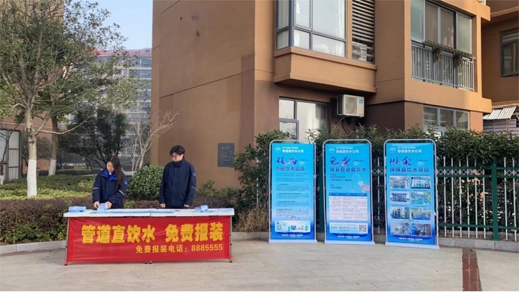 金杯銀杯,不如老百姓的口碑。為讓用戶盡快體驗管道直飲水,集團分別在兩個小區(qū)設(shè)置免費體驗點,居民可隨時品鑒。