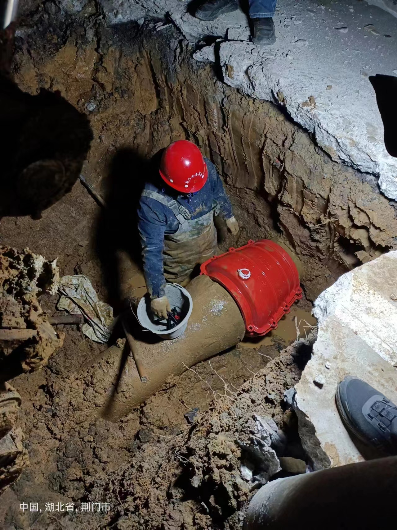 圖為12月23日城南新區(qū)關(guān)帝路DN300砼管維修現(xiàn)場(chǎng)