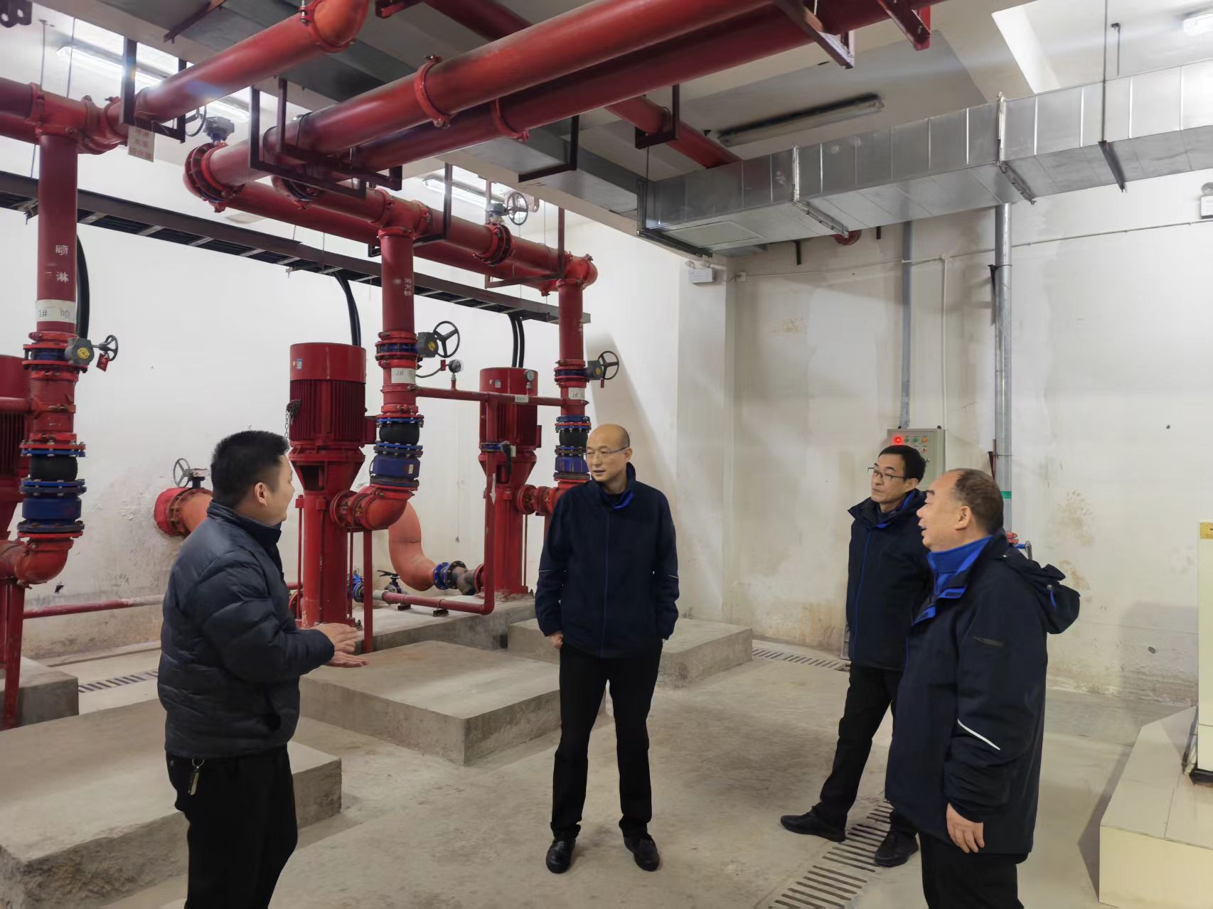 檢查組一行到集團物業(yè)公司服務(wù)的新世界小區(qū),重點檢查消防控制系統(tǒng)運行狀態(tài)、節(jié)日值班值守安排、應(yīng)急處置預(yù)案準(zhǔn)備情況,實地查看了消防疏散通道、消防器材、消防泵房、應(yīng)急照明、配電室等關(guān)鍵部位。