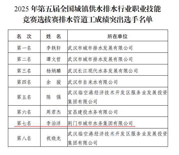近日,荊門水務(wù)集團(tuán)成功獲評第五屆全國城鎮(zhèn)供水排水行業(yè)職業(yè)技能競賽湖北省選拔賽道德風(fēng)尚獎(jiǎng)。集團(tuán)參賽選手不負(fù)眾望,取得佳績。詠泉公司付傳艷、余怡康榮獲個(gè)人優(yōu)秀獎(jiǎng),排水公司李治洋獲得第七名。