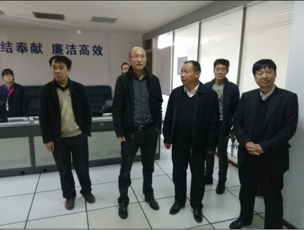 4月14日,省文明辦主任胡和平(前排右二)在市委常委、市委秘書長(zhǎng)周友坤(右一)、市委宣傳部副部長(zhǎng)、文明辦主任樊雁陪同下到公司指導(dǎo)創(chuàng)建全國(guó)文明單位工作,市供水總公司黨委書記、總經(jīng)理陳永根介紹相關(guān)情況。圖為在調(diào)度監(jiān)控中心視察時(shí)的情景。
