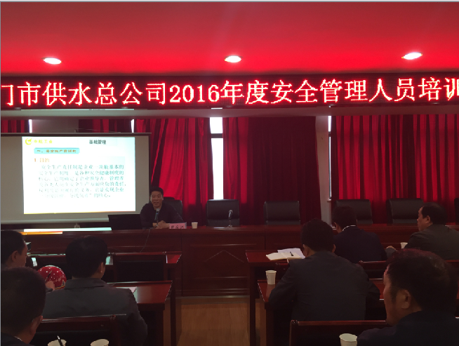 4月20日下午,市供水總公司聘請市安監(jiān)局專家?guī)鞂<?、注冊安全工程師胡在洲老師,對全公司安全管理人員、安全監(jiān)督檢查人員、安全員50余人進行安全教育培訓(xùn),規(guī)范安全管理工作和安全檢查工作,防止安全事故發(fā)生。