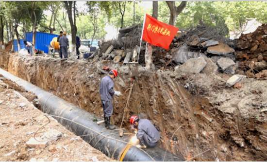 四條道路供水管線遷改工程時間緊、任務重,且施工難度大。由于道路施工工期緊張,施工單位都在全力趕工期,因此5月后進入到管線遷改工作的白熱化階段。維修處全體干部職工充滿信心,全力以赴,不辱使命,挑戰(zhàn)自我。全體施工人員克服重重困難,采取“白+黑”、“5+2”連軸轉不停歇的工作模式,加班加點,在保證安全質量的前提下,加快施工進度,確保四條道路管道遷移改造工作快速推進,圓滿完成總公司和工程建設指揮部下達的各項工作任務。
