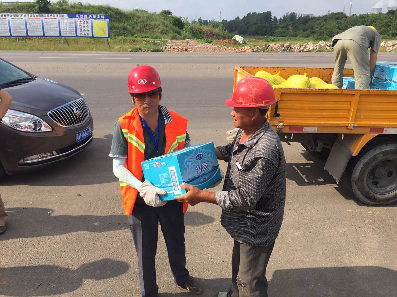 在白云大道、泉水大道等項目工地,陳永根一行將一箱箱礦泉水、飲料和西瓜等慰問物質(zhì)送到每一位施工人員手中,并親切詢問他們的工作生活情況,叮囑他們在高溫情況下作業(yè)要注意身體健康和生產(chǎn)安全。他要求,安裝公司、維修公司要加強對防暑降溫待遇及措施的落實,認真做好高溫天氣下的后勤保障工作,適當(dāng)增加高溫、露天工作人員的休息時間和減輕勞動強度。要切實做好高溫天氣的安全隱患排查,確保各個重點項目按時間節(jié)點穩(wěn)步推進和一線工人的安全、健康。