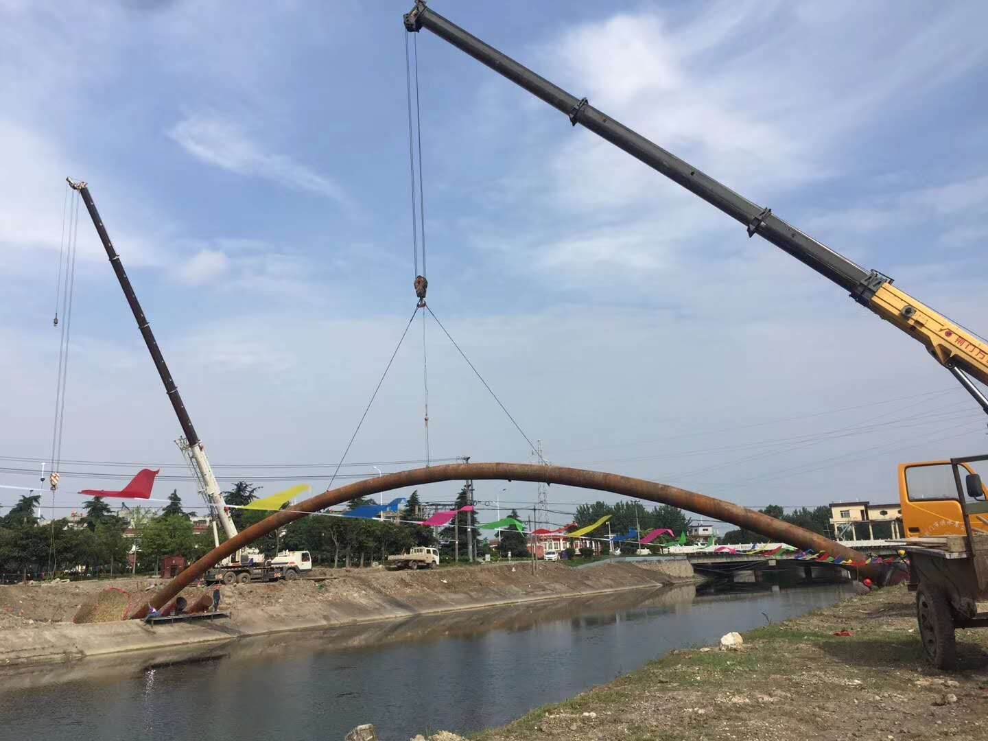 6月2日,跨總干渠DN800拱形鋼管吊裝合龍,標(biāo)志著荊門(mén)市供水總公司三水廠跨總干渠吊裝工程順利完成。至此,跨總干渠拱形鋼成為總干渠上又一道新的“彩虹橋”風(fēng)景。
