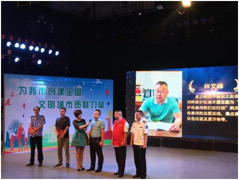 漳河是荊門(mén)人民的母親河。從事供水事業(yè)近30年以來(lái),無(wú)論酷暑嚴(yán)寒、刮風(fēng)下雨,林文峰堅(jiān)持每天巡查水源保護(hù)區(qū),帶領(lǐng)水廠(chǎng)員工清理取水口周邊雜物,確保水源干凈整潔和供水安全優(yōu)質(zhì)。頒獎(jiǎng)典禮上,林文峰現(xiàn)場(chǎng)講述了近二十年持之以恒的水源地環(huán)保行動(dòng),樸實(shí)無(wú)華卻震撼心靈,為廣大市民樹(shù)立了環(huán)保典范。