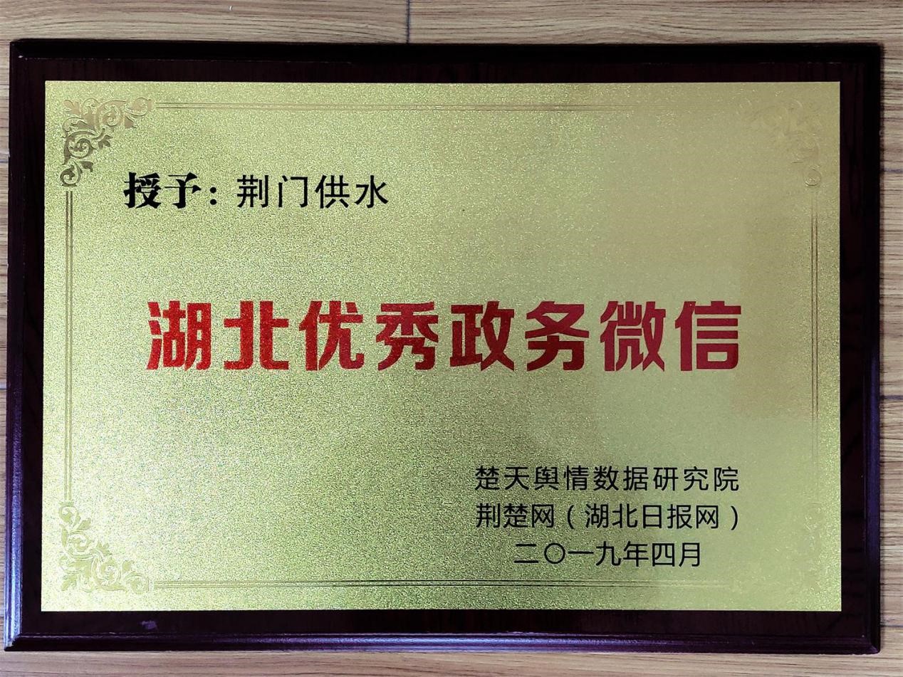 4月26日上午,由省委網(wǎng)信辦指導(dǎo)、湖北日報(bào)傳媒集團(tuán)主辦的2019湖北第二屆政能量峰會在武漢舉行。會上,“荊門供水”微信公眾號被楚天輿情數(shù)據(jù)研究院、荊楚網(wǎng)(湖北日報(bào)網(wǎng))表彰為“全省優(yōu)秀政務(wù)微信公眾號”。